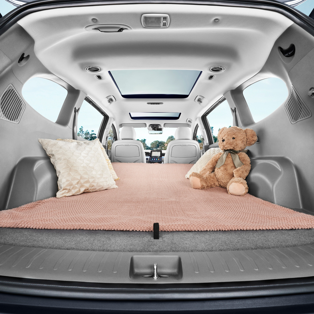 后备箱满载可装6个20寸行李箱,超过1.2m的开口宽度外加最长2.2m的装载深度可以轻松放下一张单人床,哪怕是搬家拉货也不在话下。