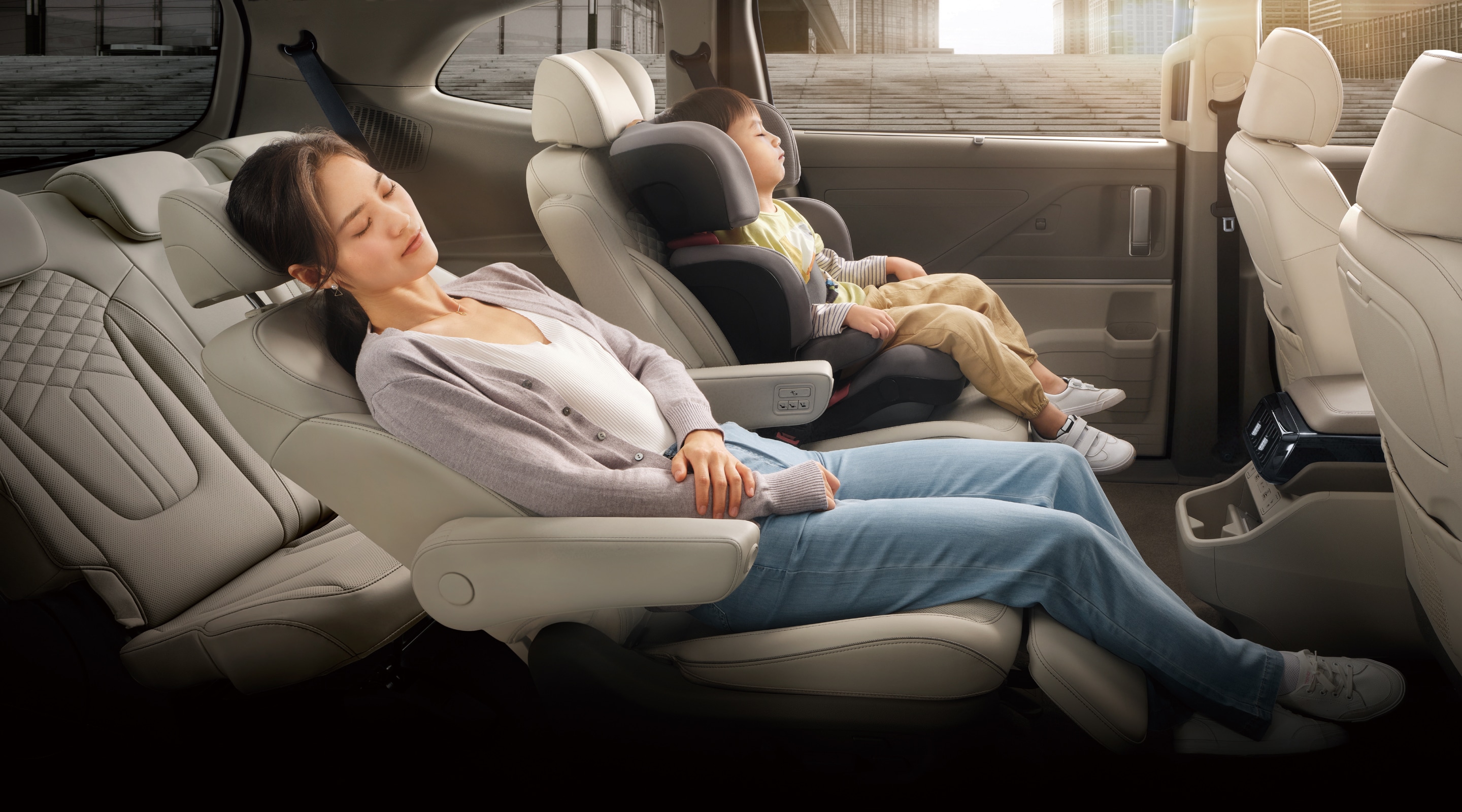 能够在不影响驾驶的同时随时实现中控对2排座椅的调节。对家人的关怀是“暖心盖被”的行动,库斯途让你对家人的照顾,随时随地一键到位。