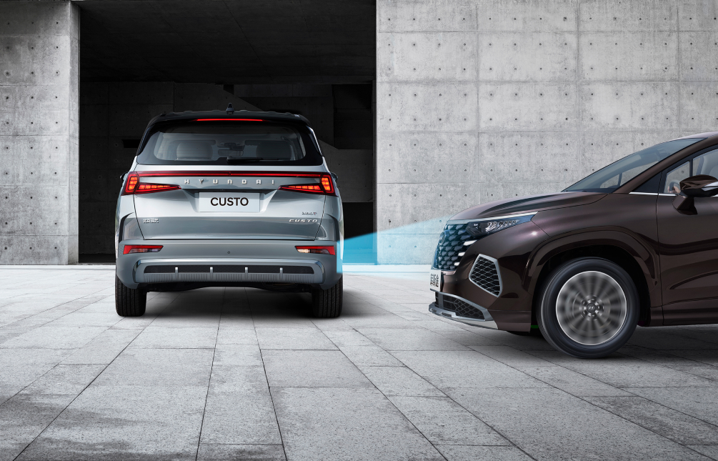 速度在60km/h以上行驶并转向变更车道时监测后侧方临近车辆,发现有碰撞危险时在外后视镜亮灯警告,发出警告音并进行制动以避免或减轻碰撞伤害。