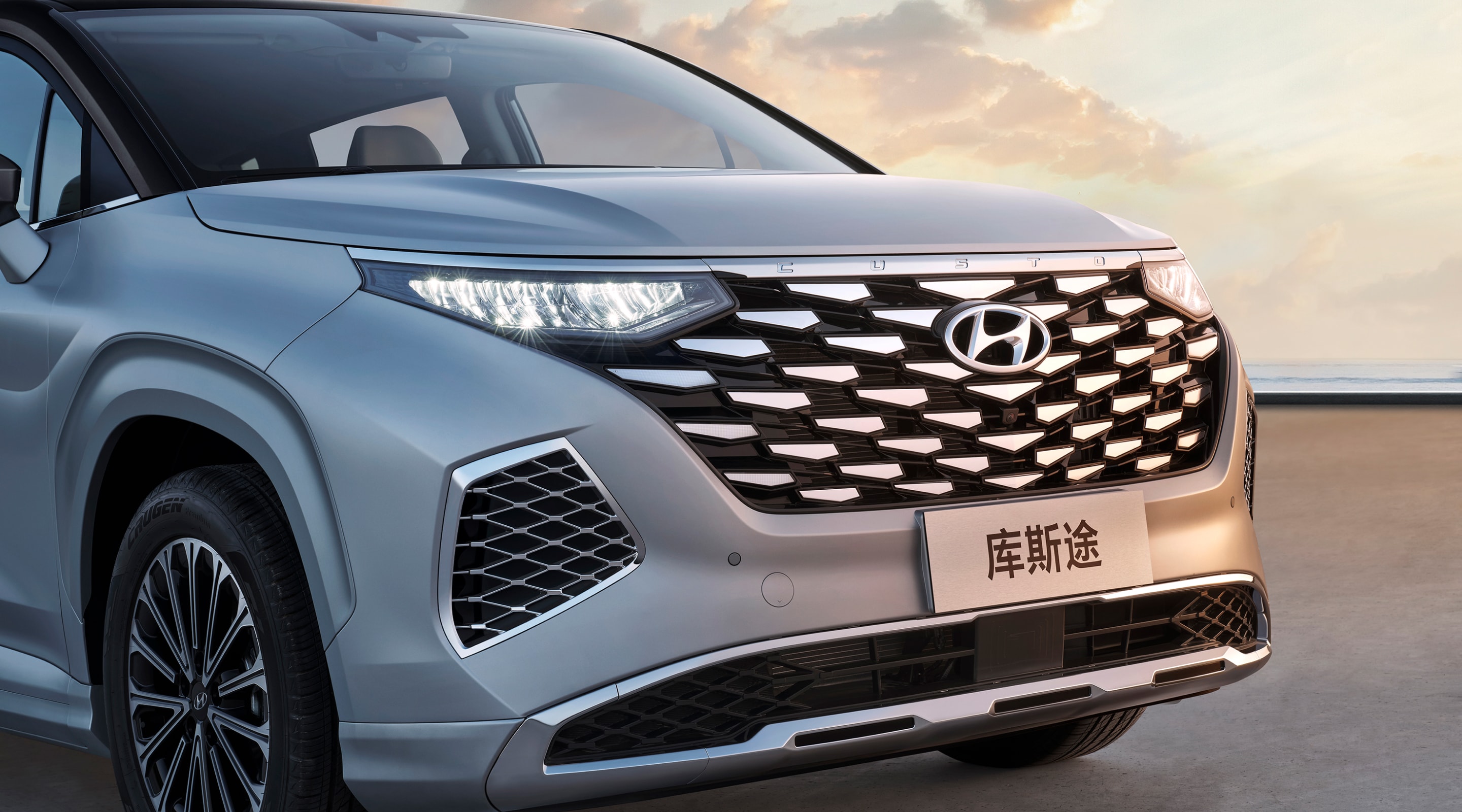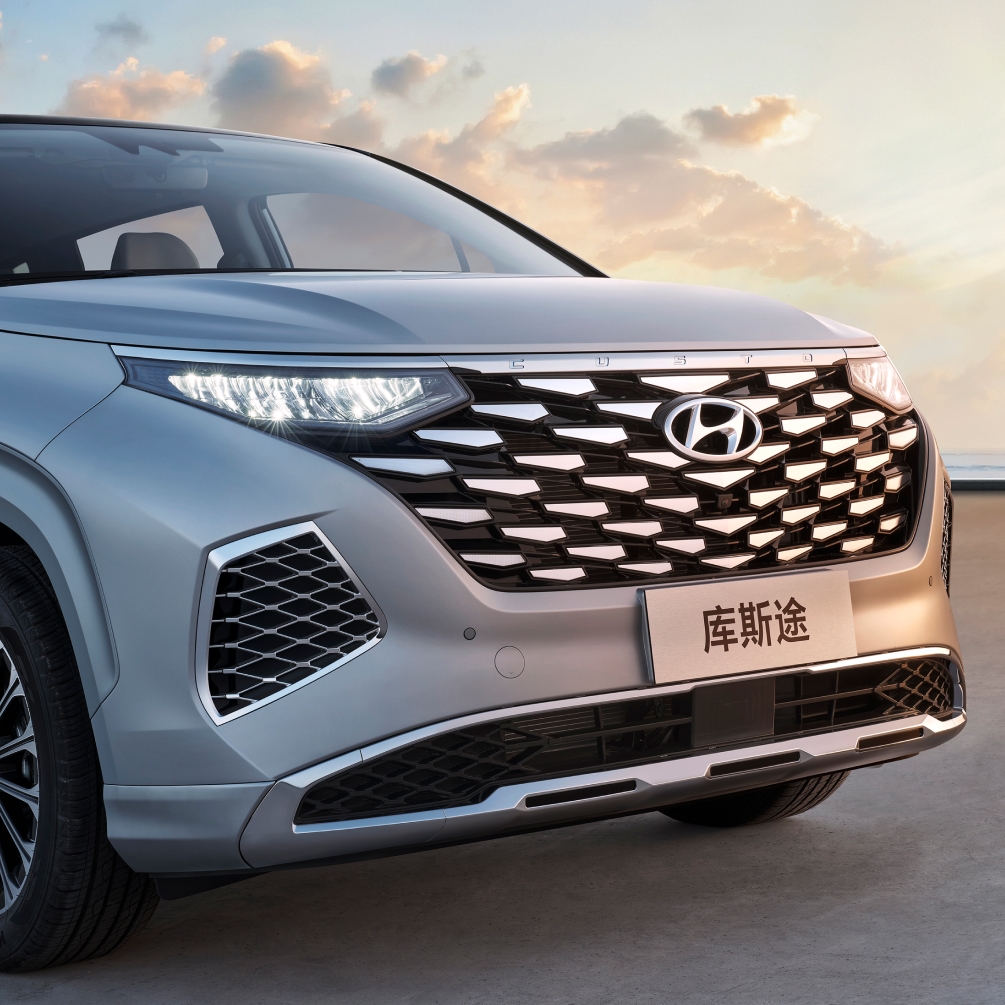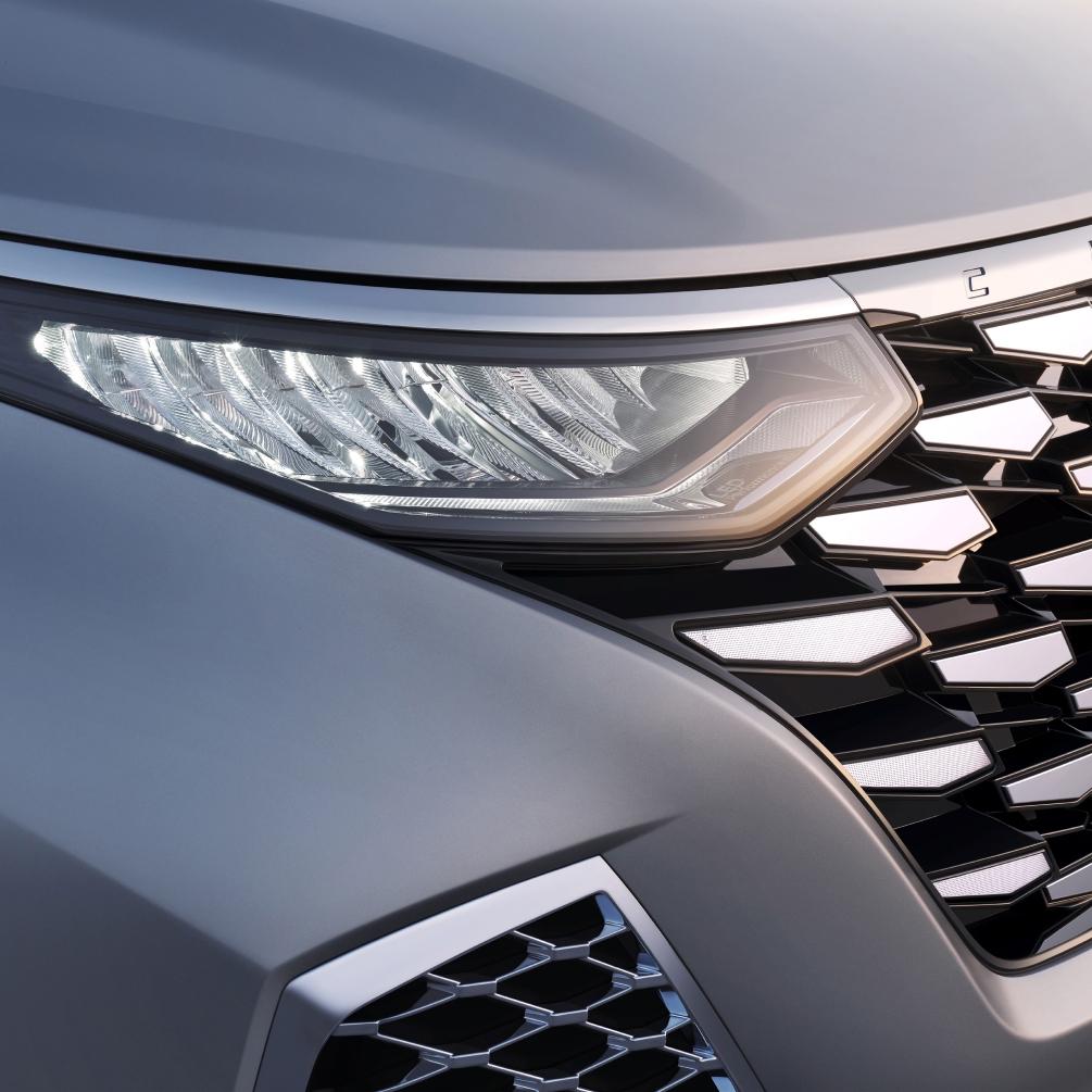 灵感源自宝石原矿线条,犹如碎钻的楔形元素规则排列分布,新增高亮镀铬前格栅和侧导风口,随不同的视角和光线反射,如同一颗璀璨的宝石,大大提升了前脸辨识度和质感。